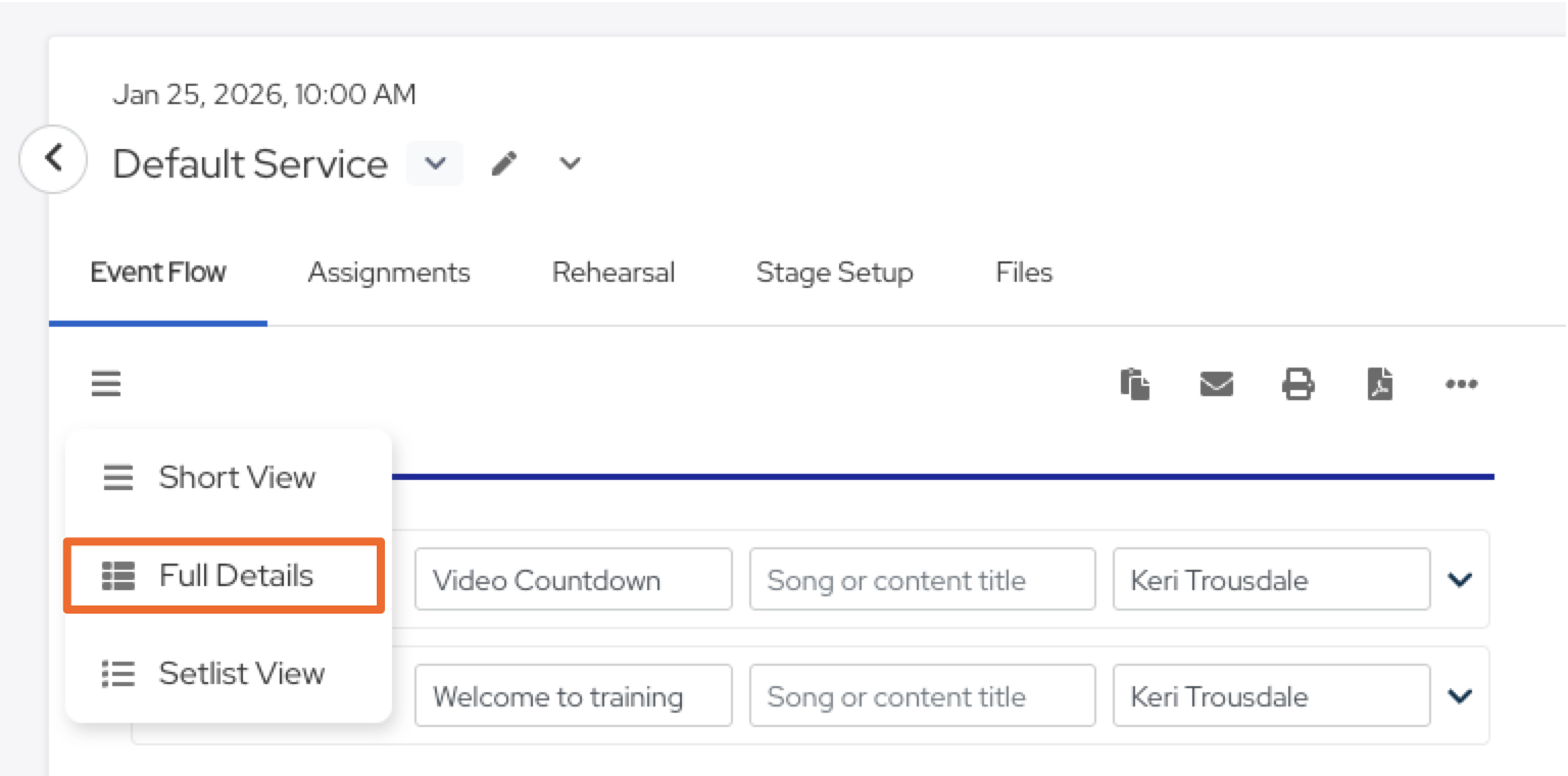 2. Click the line icon directly below the words "Event Flow" and a short dropdown will appear. From there select "Full Details."