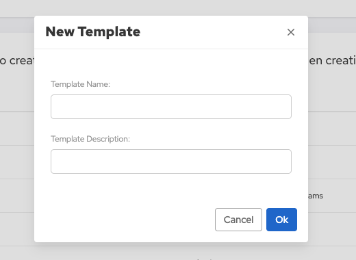 If you already have templates created for your church, you will see a list here, or you can click "Create A Template" in the upper right hand corner, and you'll be asked to give it a name and description.