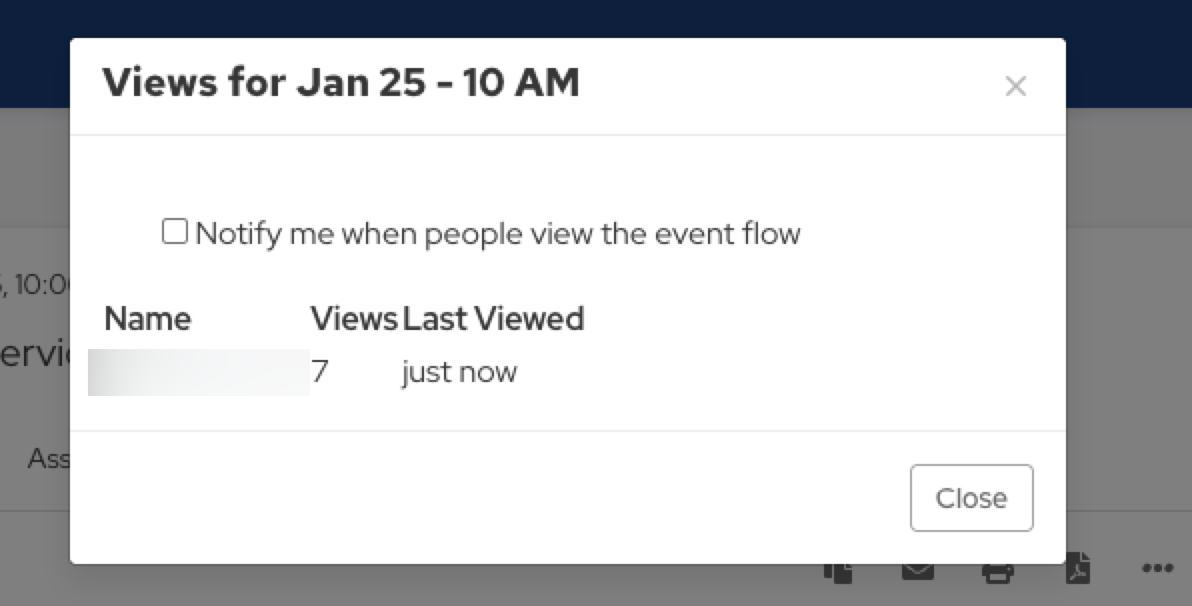 If you want to know immediately when someone has viewed the flow for the first time, you can enable those notifications to be sent via email, text, or both. Check out our support article on Event Flow View Notifications.